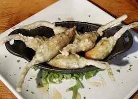 Dates wrapped with prosciutto & stuffed with ricotta cheese